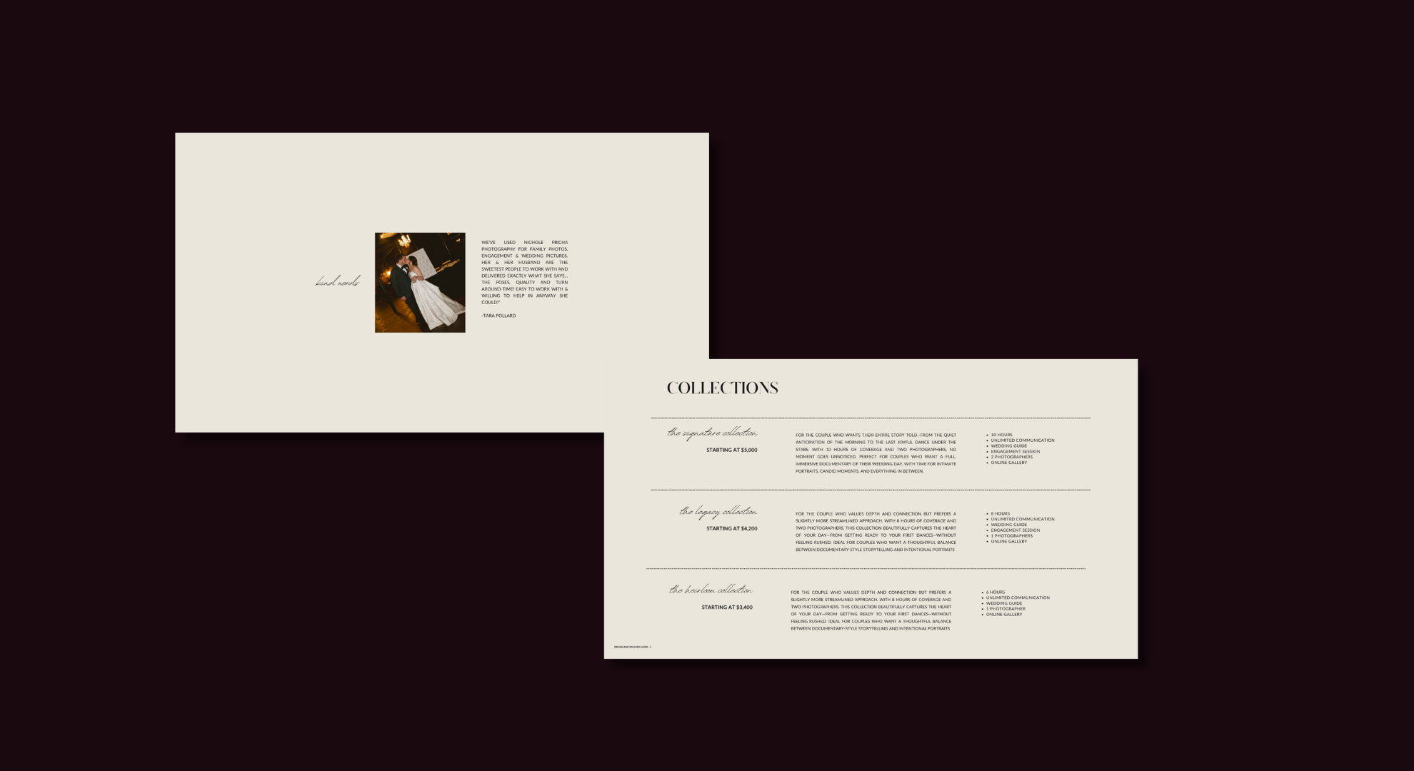 Advantages of Using Services Guide: Helps elevate your brand to attract sophisticated, luxury clients who value intentional artistry and an effortless process.